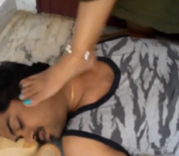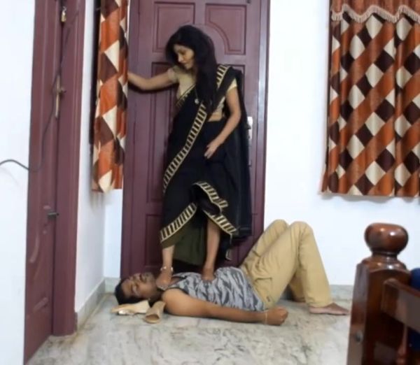 220-Indian mistress bare soles trampling on home slaveboy HD